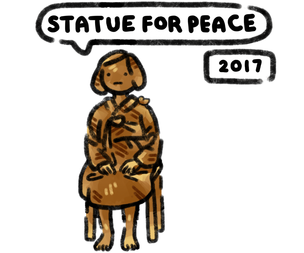 The Statue for Peace in Brookhaven, Georgia, was dedicated in 2017 to honor the memory of young girls and women from Korea, China, and the Philippines who endured gender-based violence during World War II. It was created through community efforts led by Asian Americans and their allies, in addition to support from city leaders. The statue stands for peace, resilience, and human rights. It invites people from all backgrounds to reflect on the painful history and work together for a better future.
